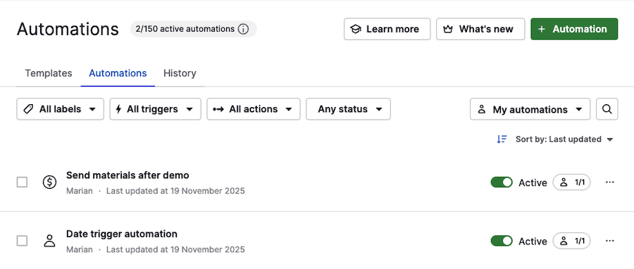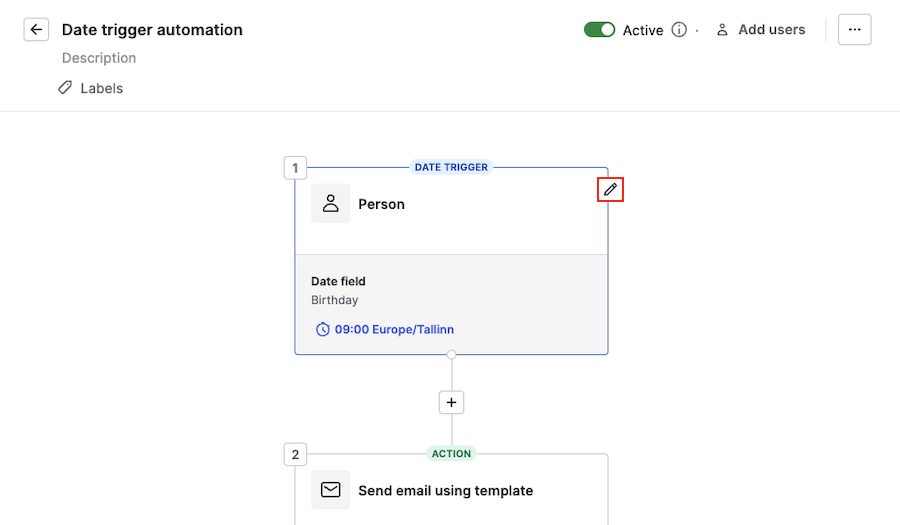 Unlike event-triggered automations, you can edit the trigger on date-triggered automations without removing the subsequent steps or starting from scratch.