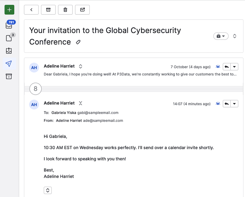 Since Pipedrive has its own threading rules, email conversations may appear differently than they do in your email provider.