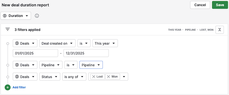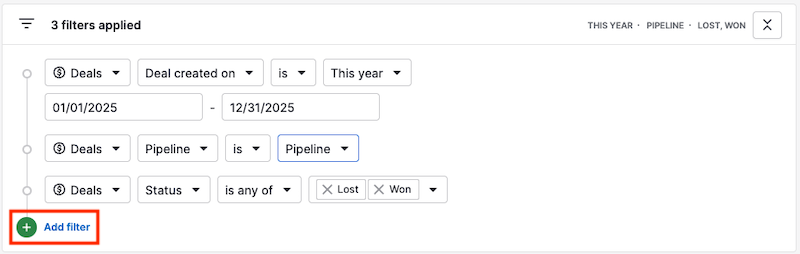 You can edit the existing filters or click “+ Add filter” to add another one.