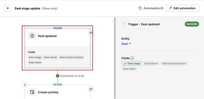 To see which field triggered an automation, open the history tab and select an automation from the list.