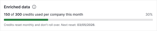 Each month, Pipedrive provides a fixed number of data enrichment credits based on your plan. These credits reset on the first day of every billing cycle.