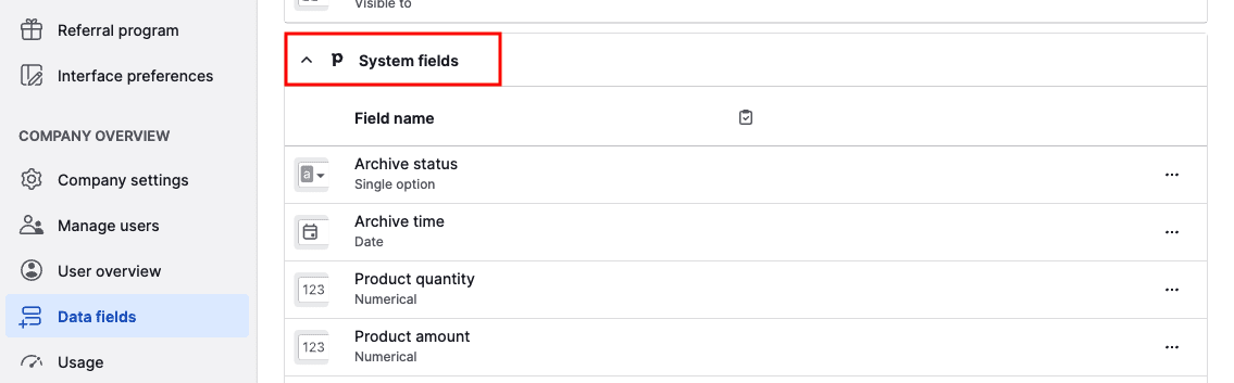 Data fields in Pipedrive