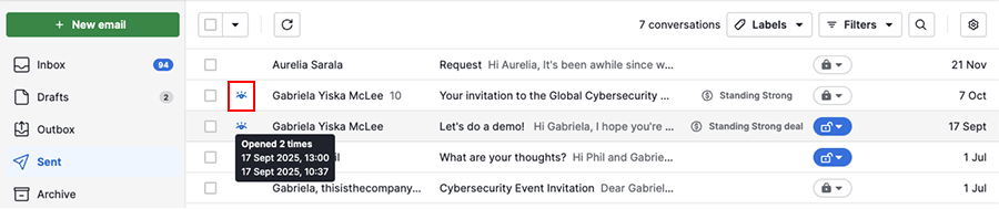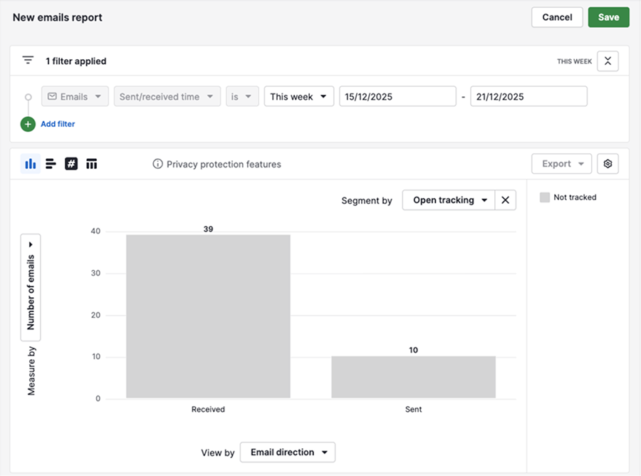 Create an email performance report in Insights to analyze open rates, click rates and other key metrics across your sent emails. These insights can help improve your outreach strategy over time.