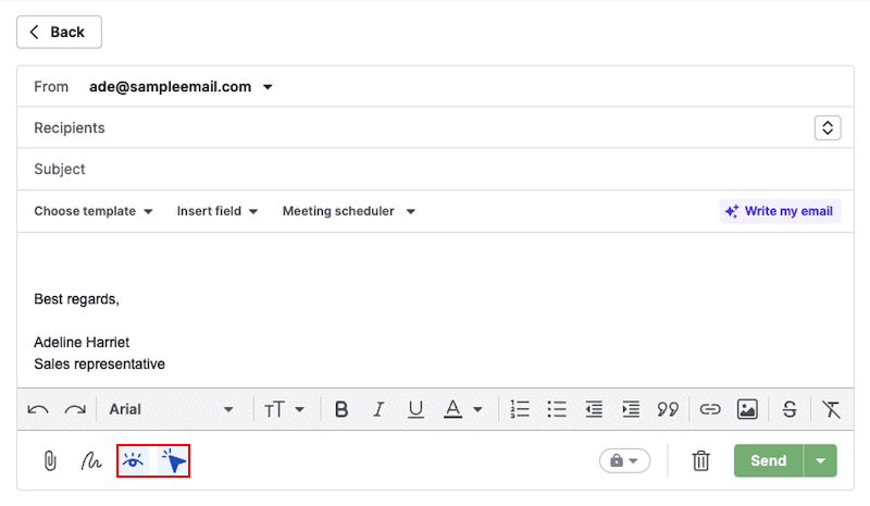 These tools are available when reading or composing emails in your Sales Inbox or in detail views.