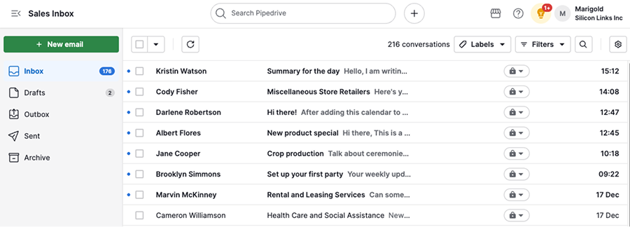 Use email sync to centralize your email communication in Pipedrive. Whether you’re using a personal account or a shared team account, you can: