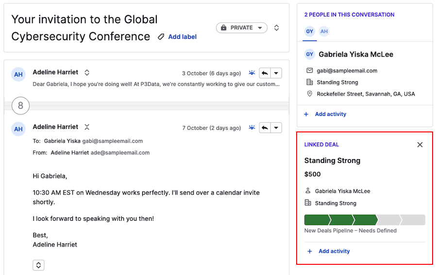 Once your account is connected, all email activity is handled from the Sales Inbox – no need to switch between tabs or apps.