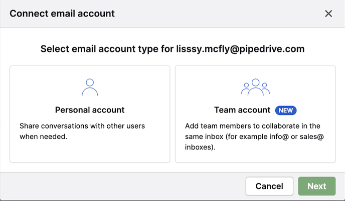 You can choose to connect a personal email account or a team email account, depending on your role and how you collaborate.