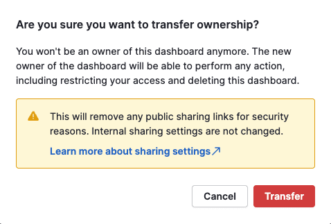 After selecting a new owner and clicking “Save,” you’ll be asked to confirm the transfer.
