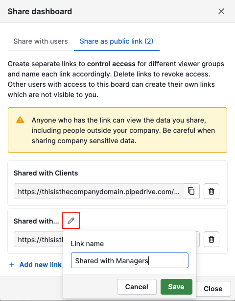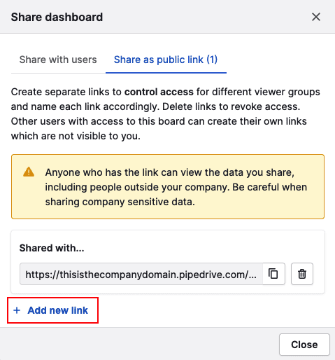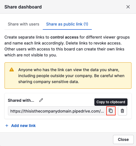 Anyone with the link can view your dashboard, even if they don’t have a Pipedrive account.