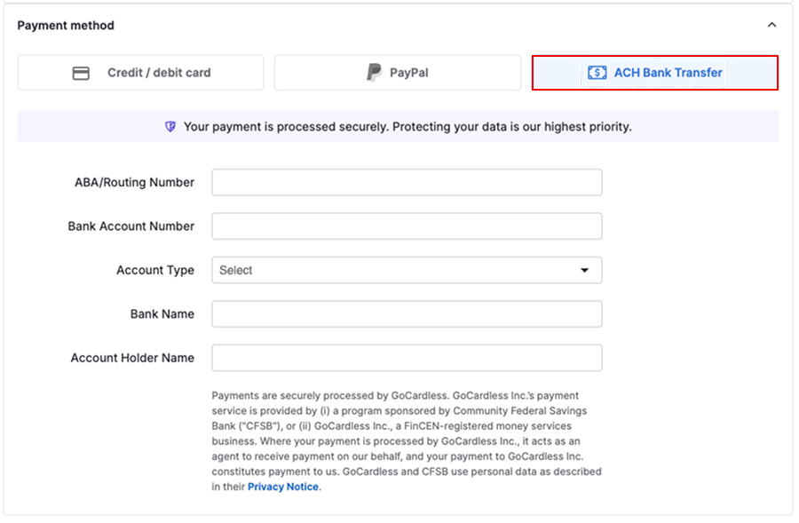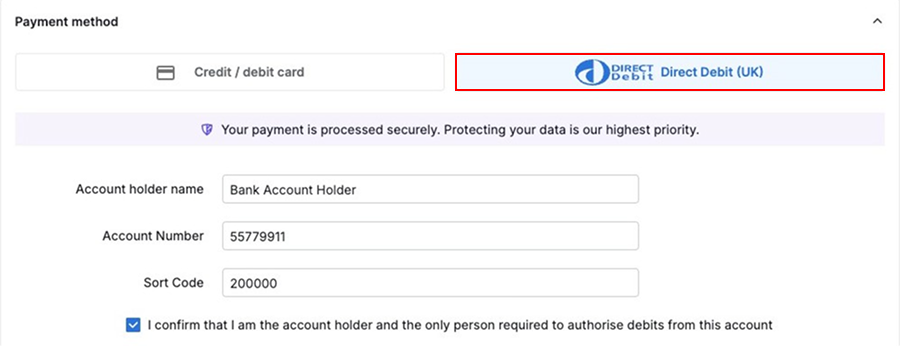 When you select direct debit during checkout, you’ll be asked to review and accept the direct debit mandate before completing your purchase.