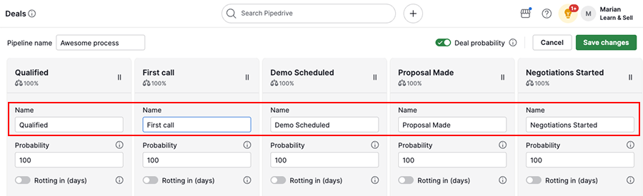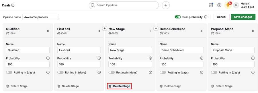 Sales processes evolve over time, so review your pipeline regularly and adjust stages as needed.