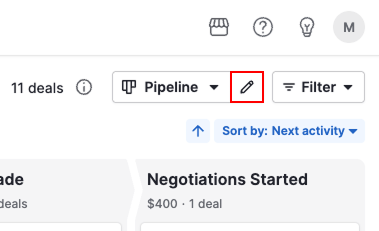 Apri visualizzazione della pipeline e fai clic sulla icona della matita accanto al nome della pipeline per modificarla.