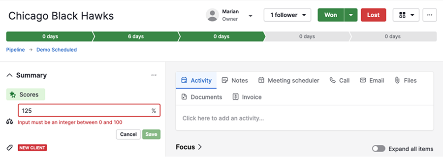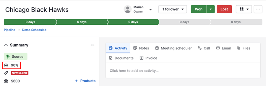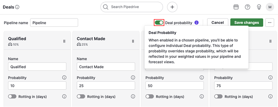 In Pipedrive, la probabilità dell'affare rappresenta la probabilità di chiudere con successo una determinata trattativa.