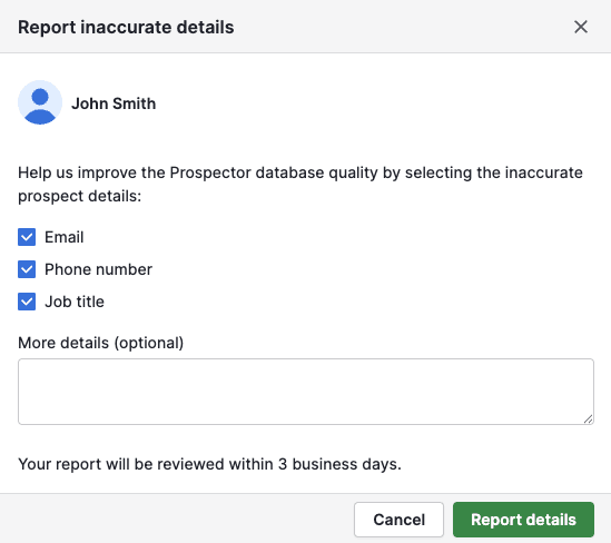 리드에 무효한 이메일 주소, 사용 불가한 전화번호 또는 오래된 직함과 같은 잘못된 정보가 포함된 경우, 크레딧 환불을 요청하려면 당사 팀에 신고해 주세요.
