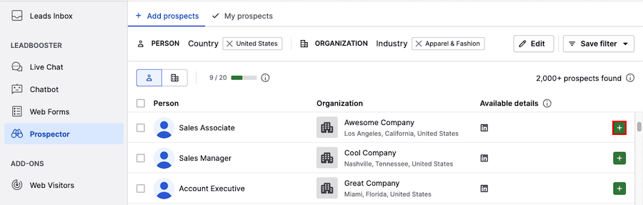 개인화된 필터를 사용하여 새로운 리드를 찾아 Leads Inbox에 추가하세요.