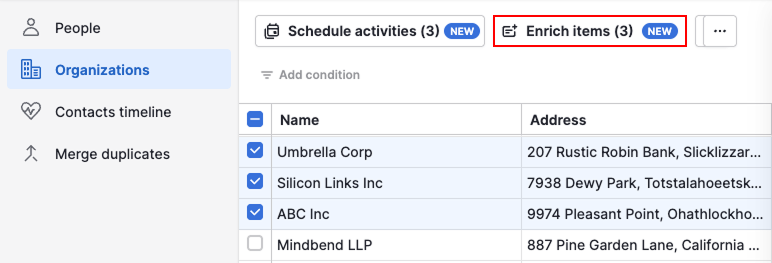 Pipedrive zal proberen openbaar beschikbare informatie, zoals bedrijfsgegevens, toe te voegen om uw gegevens aan te vullen.