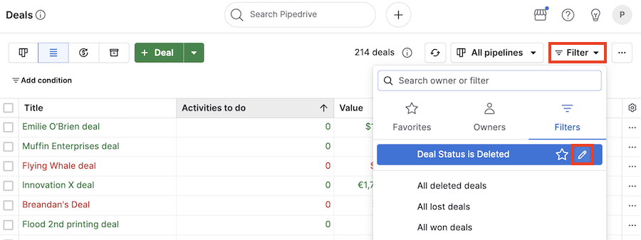 After you’ve selected your filter, click the pencil icon next to the filter name.
