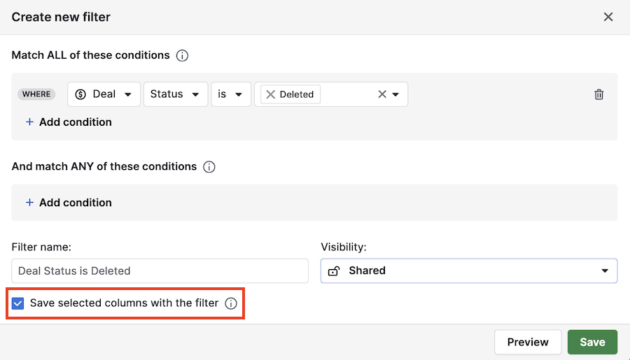 In the edit filter modal that pops-up, check the box for “Save selected columns with the filter,” then click “Save.”