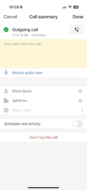 A hívás befejezése után rögzítsd a hívás összefoglalóját közvetlenül a Pipedrive mobilalkalmazásban.